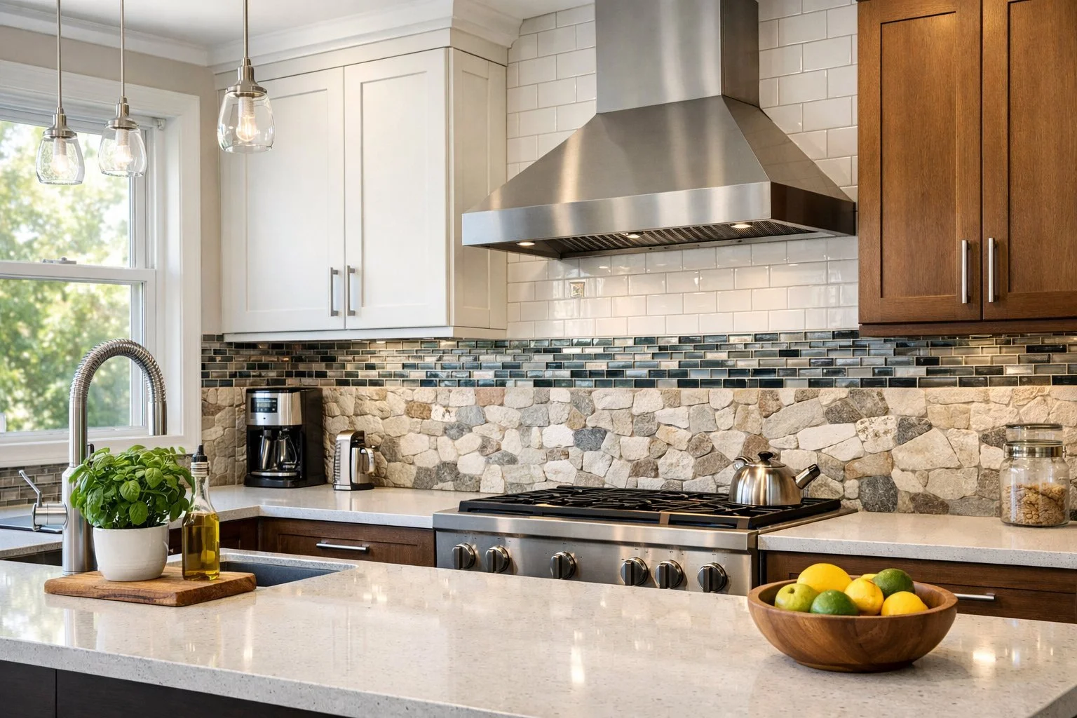 Your backsplash has to look good and work for your daily life. The material, color, and how it matches your counters all play a part in how your kitchen feels and functions.